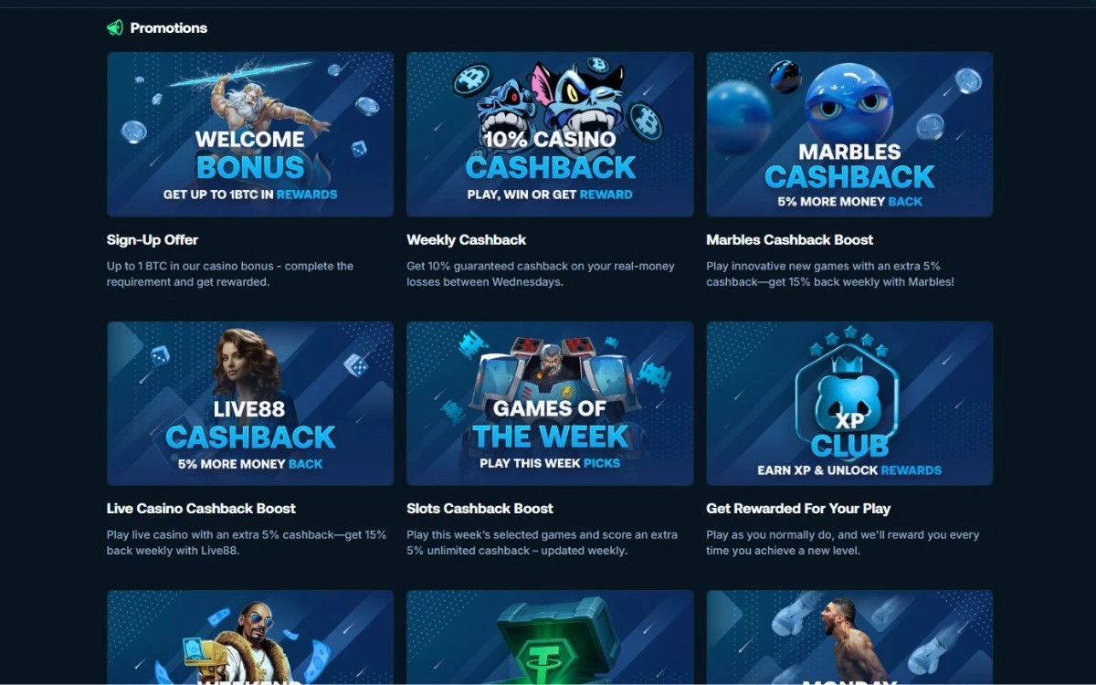 Esta plataforma é mais adequada para jogadores experientes em apostas com criptomoedas que valorizam pagamentos rápidos e bônus semanais.